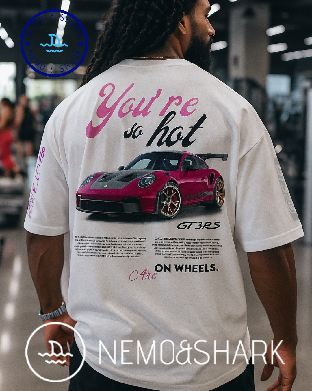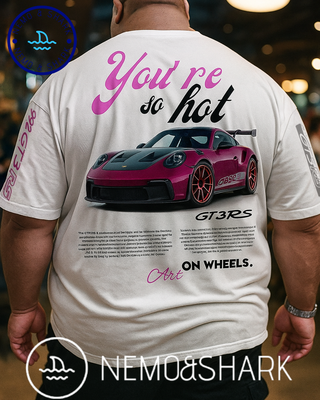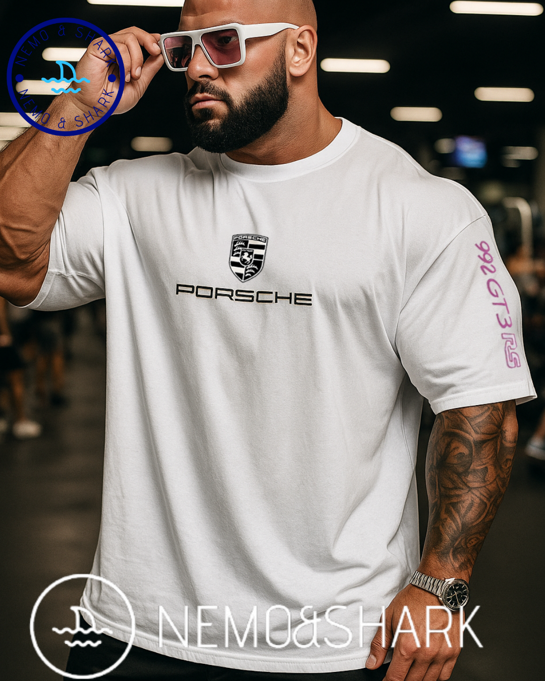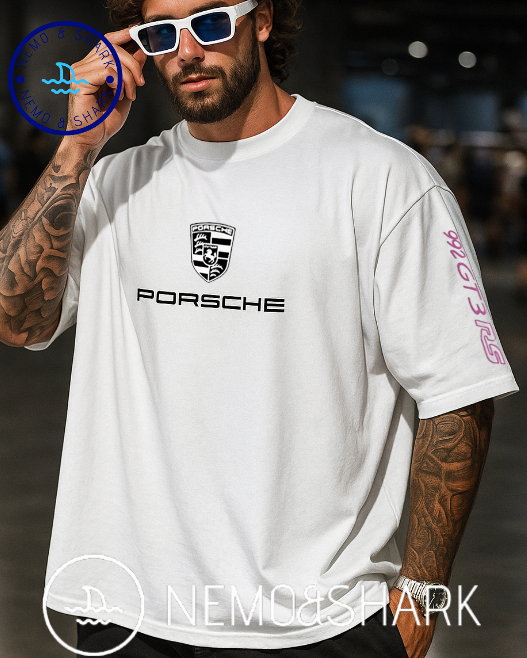 تيشيرت بورش بحجم كبير مع طباعة على الصدر والظهر